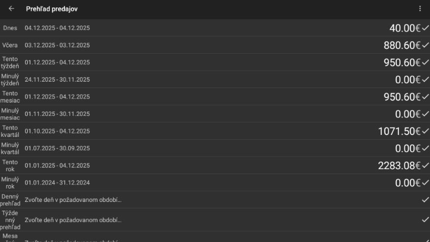 Otvorte hlavné menu ☰ → PLU Uzávierky.