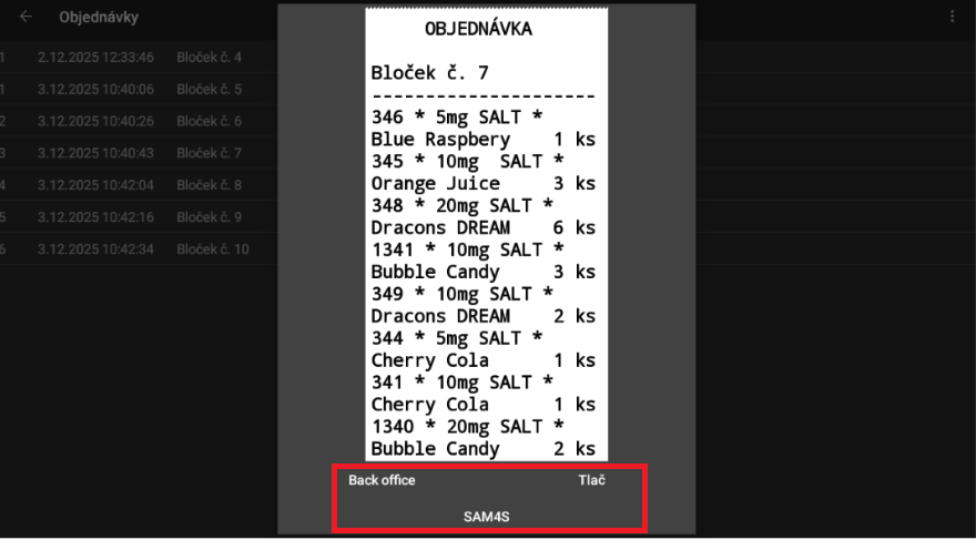 - SAM4S (vytlačí objednávku konkrétne na tlačiareň značky SAM4S).