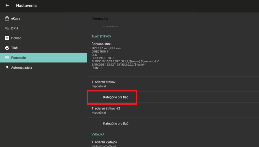 Taktiež je možné tlač prispôsobiť podľa typu tlačiarne. Aplikácia ELIO KASA