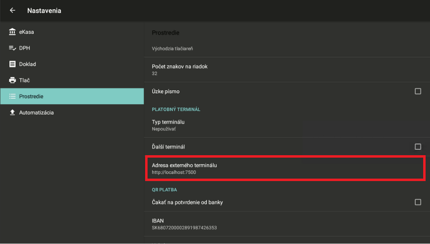 pokladni, kam má posielať údaje (adresa servera, ktorý spracúva