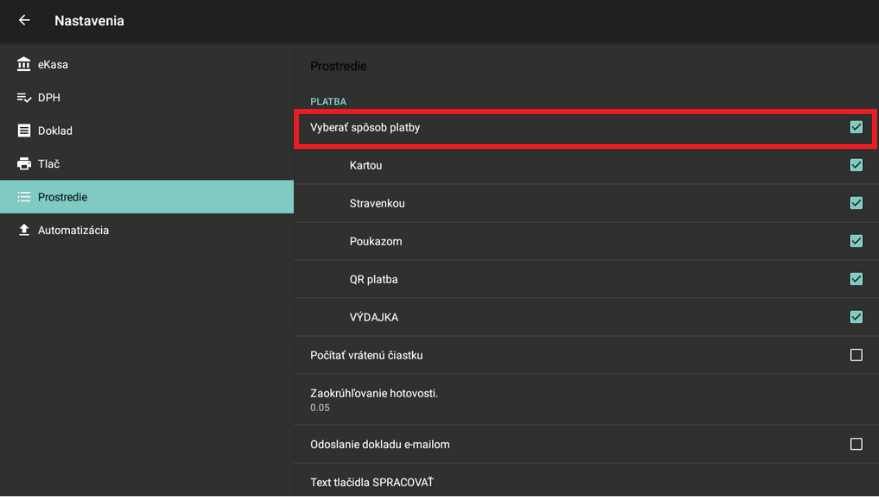 Text na konci dokladu a zadáme text, ktorý chceme, aby sa tlačil na konci pokladničného dokladu.