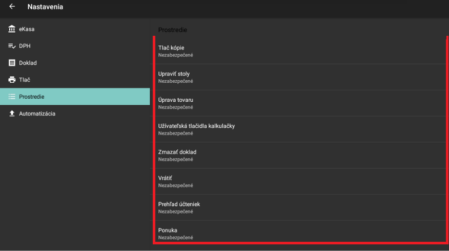 je zapnuté, neuzavreté účtenky (napr. pri reštauračnej prevádzke) sa