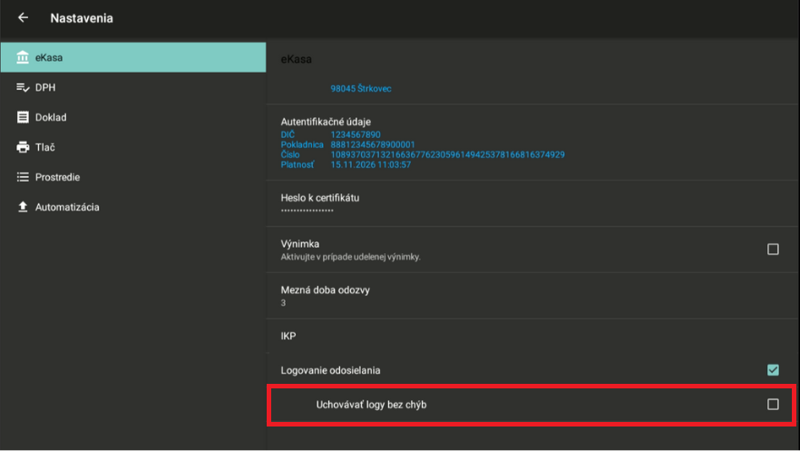 zaznamenáva (loguje) celý proces komunikácie s eKasa systémom Finančnej