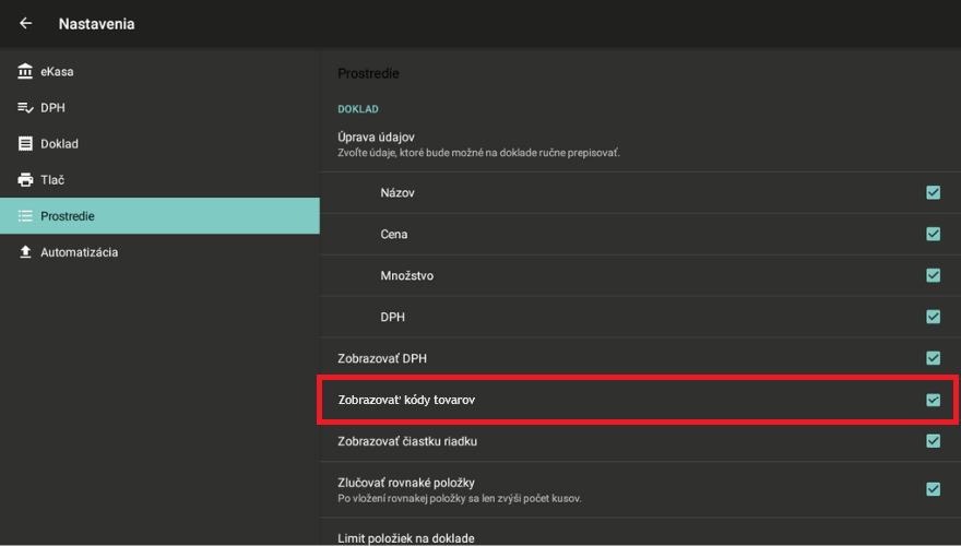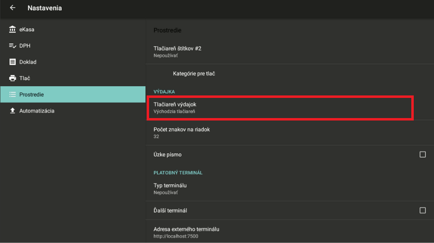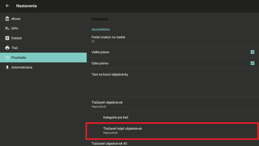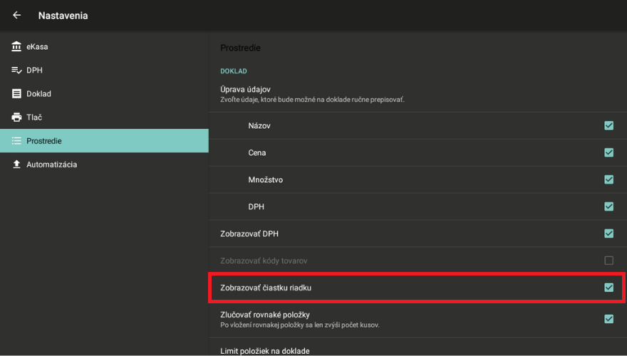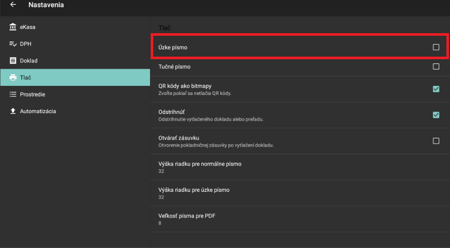 zapnutí tejto možnosti sa pokladničný doklad po vytlačení automaticky odstrihne.