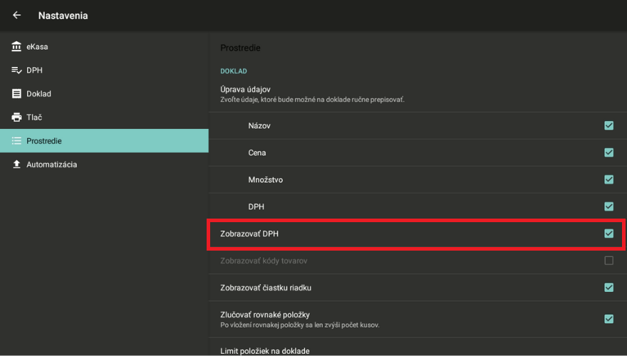 Jednotlivé DPH sadzby sú v aplikácii prednastavené na hodnoty 23, 19, 5 a 0.