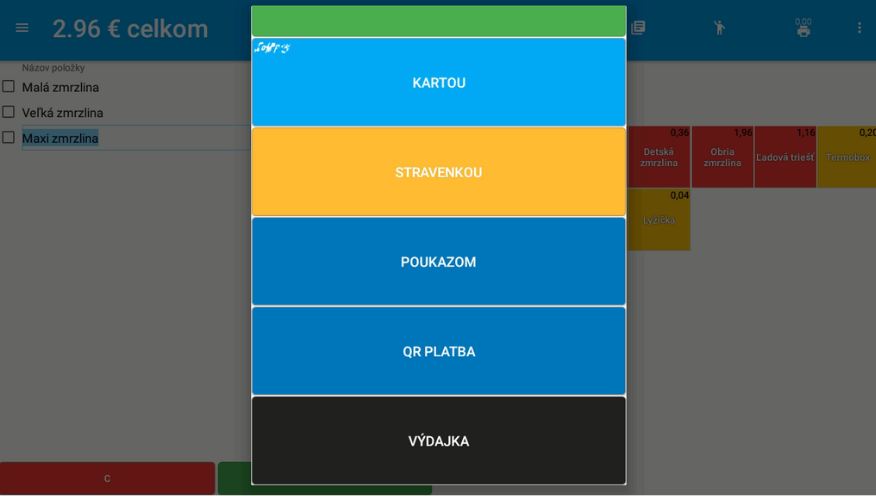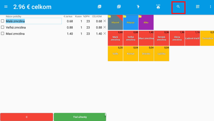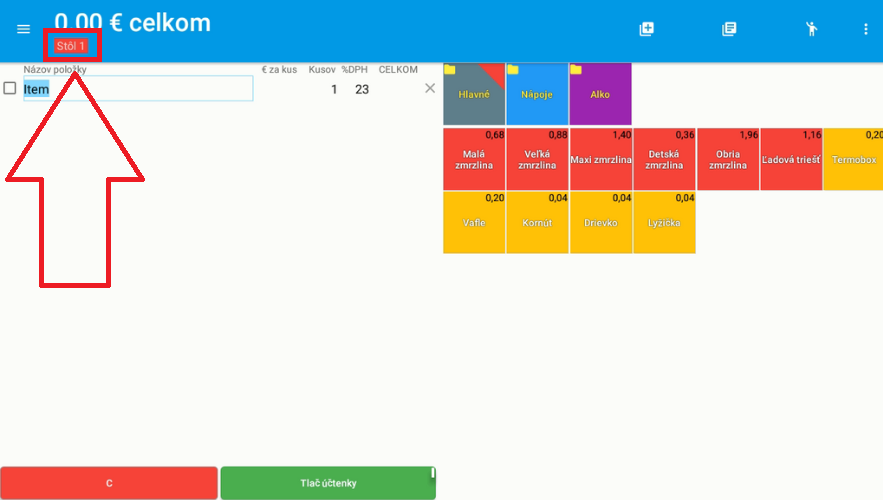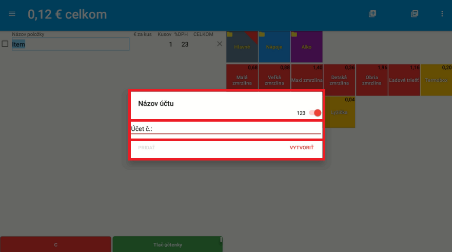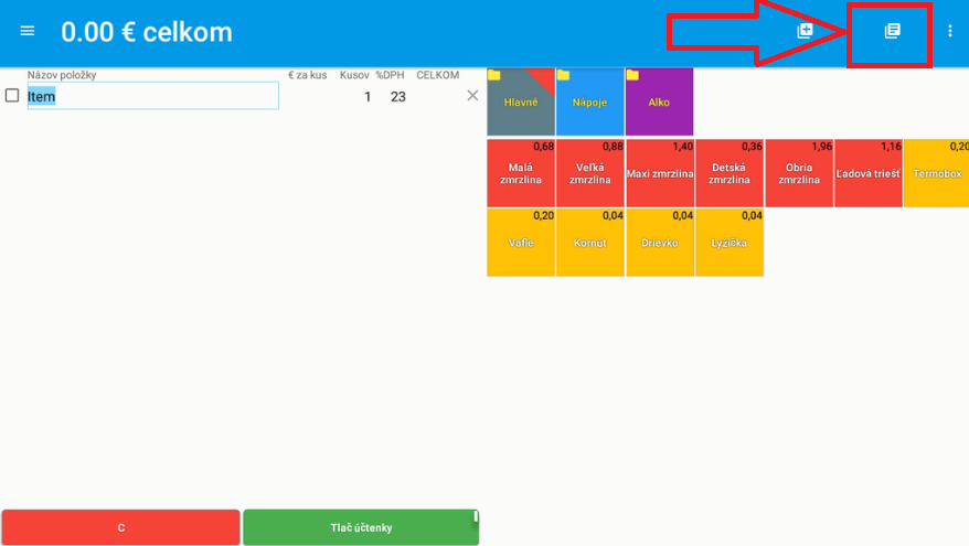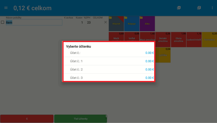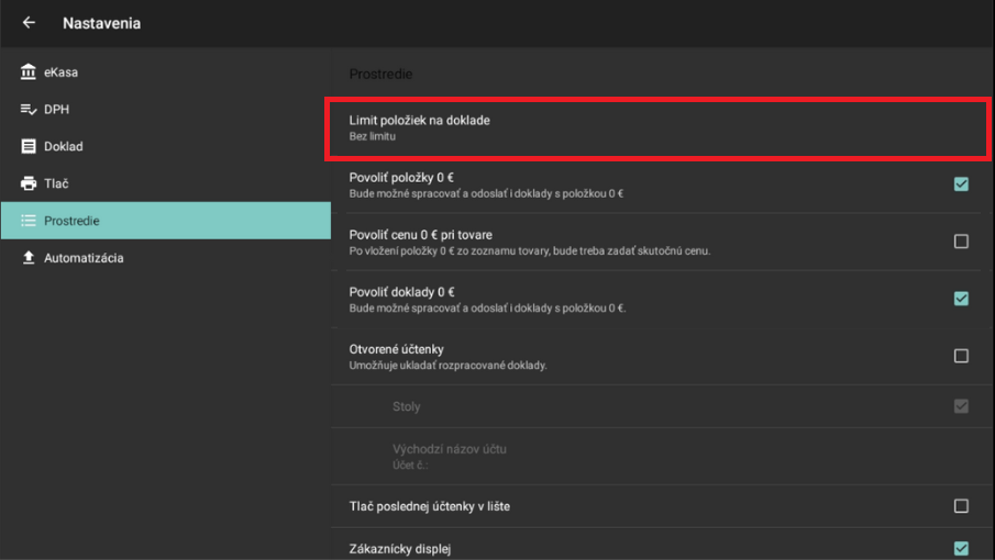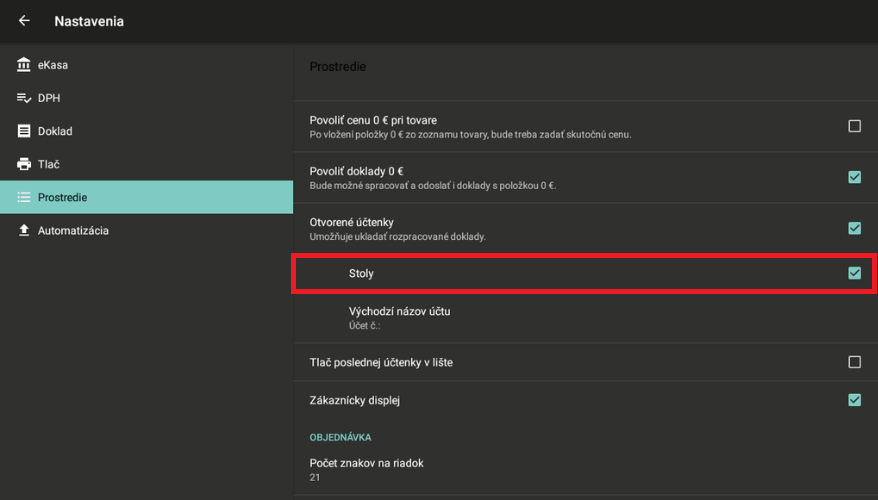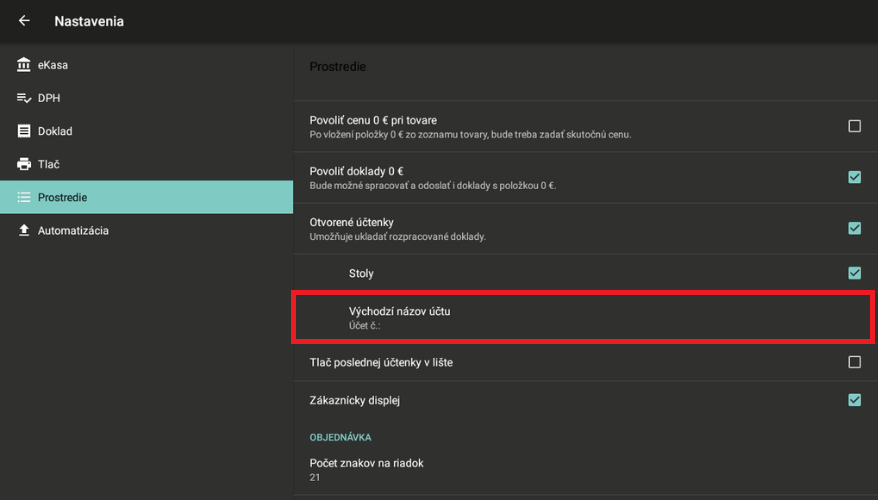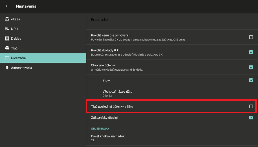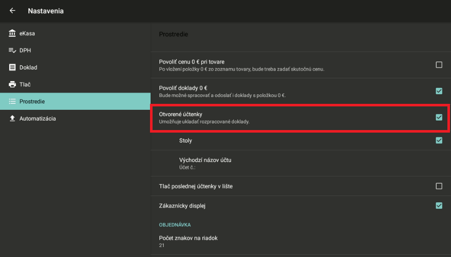 je zapnuté, neuzavreté účtenky (napr. pri reštauračnej prevádzke) sa