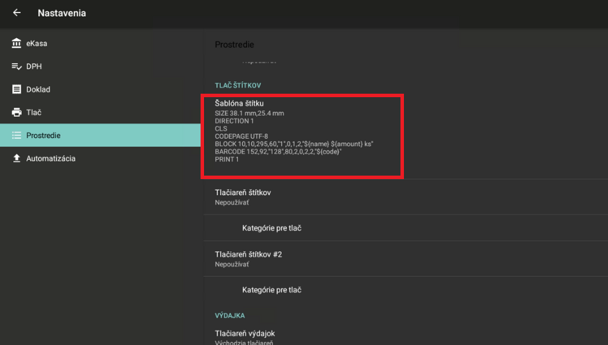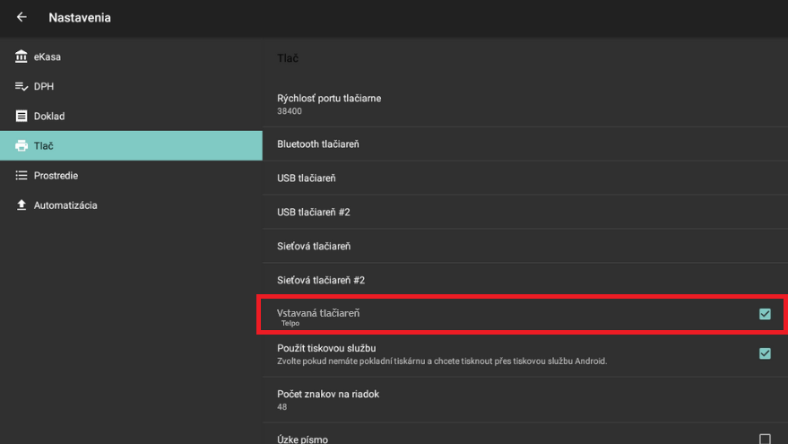 V aplikácii je potrebné nastaviť – Rýchlosť portu tlačiarne na 38400,