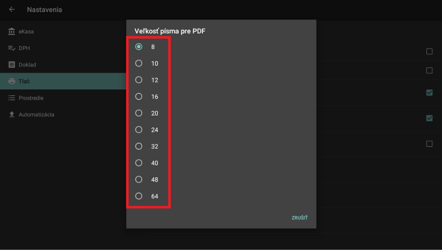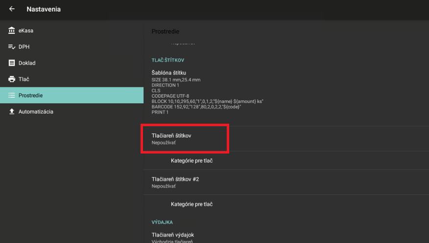 Taktiež je možné tlač prispôsobiť podľa typu tlačiarne. Aplikácia ELIO KASA