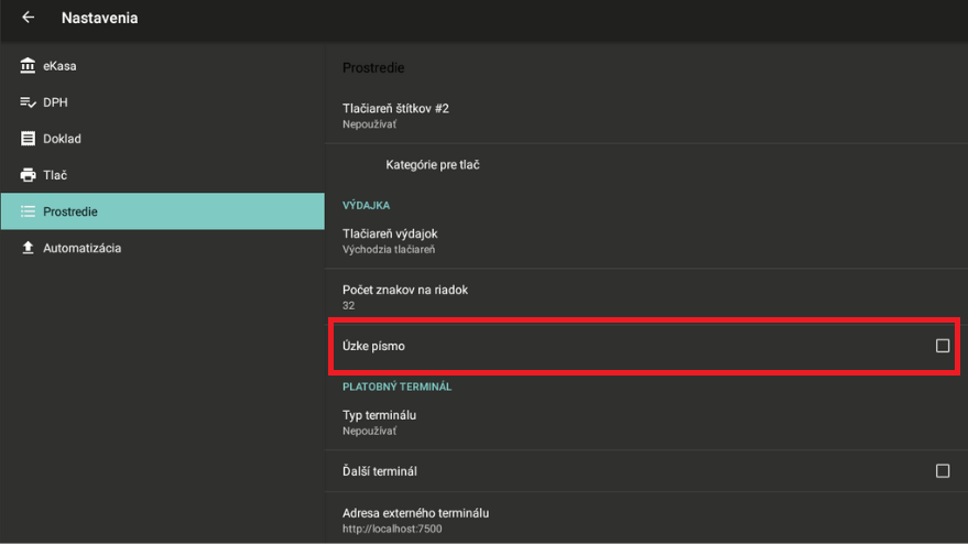 Úzke písmo je možnosť, ktorá ponúka použitie úzkeho písma na vytlačenom doklade.