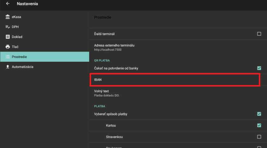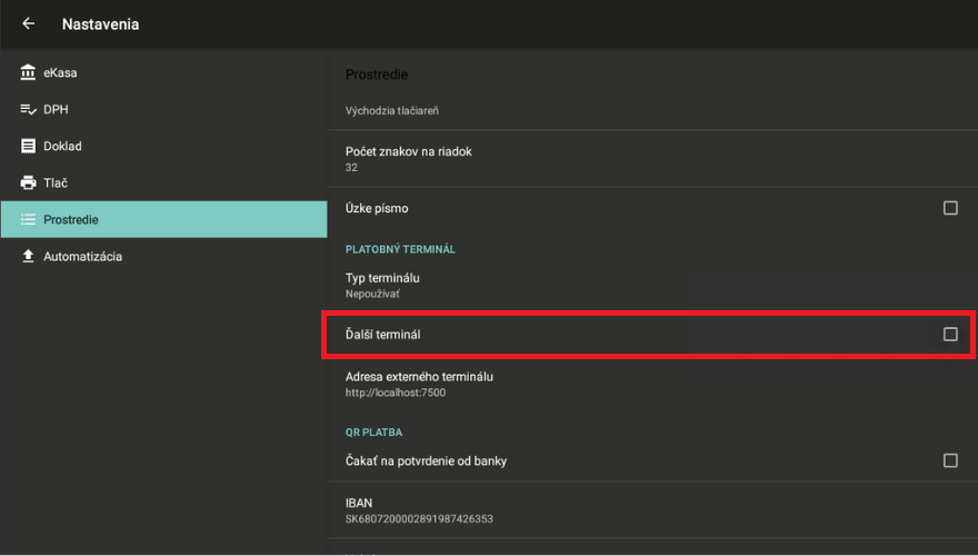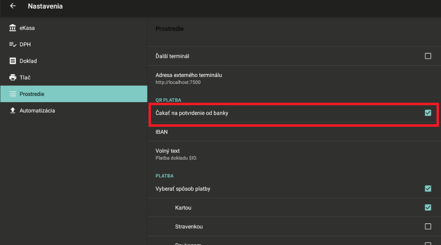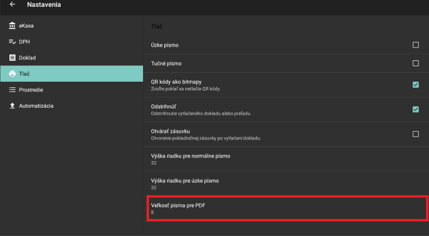 QR kódy ako bitmapy.Voľbu tlačiť QR kódy ako bitmapy je potrebné nastaviť aj pri zariadení elio miniPOS A7, pretože