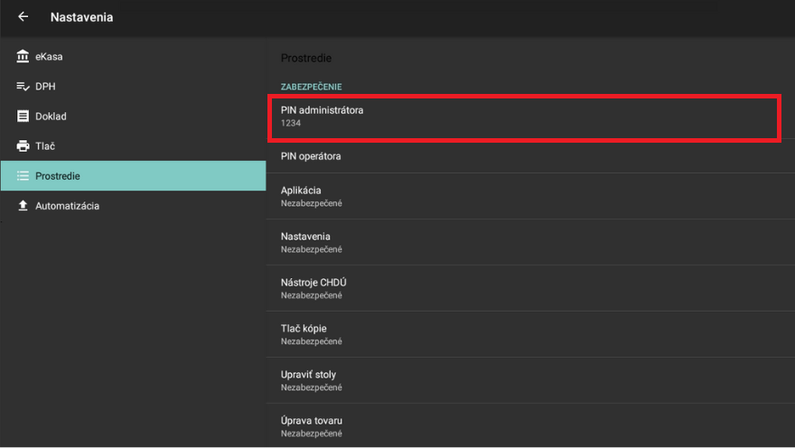 Je možné zadať aj PIN kód pre operátora, ktorý bude slúžiť pre prístup