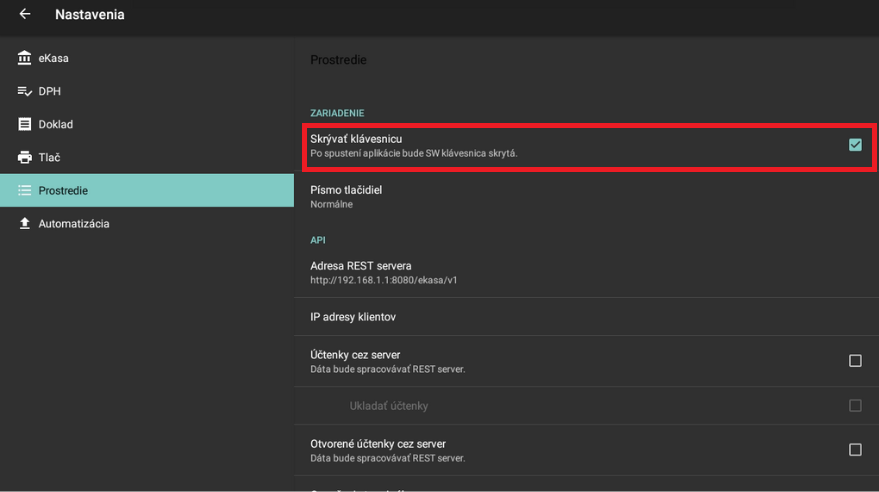 je zapnuté, účtenky sa posielajú a spracúvajú cez server, nie priamo v