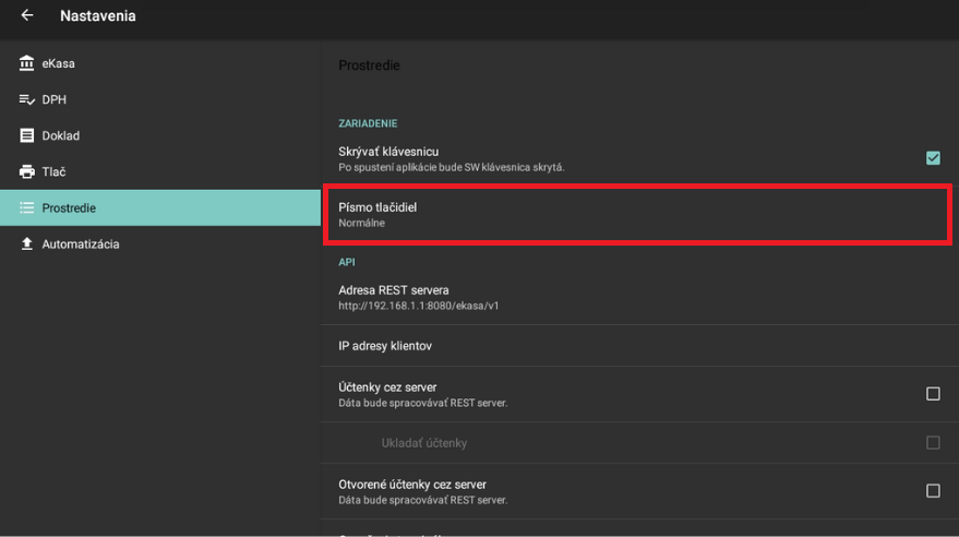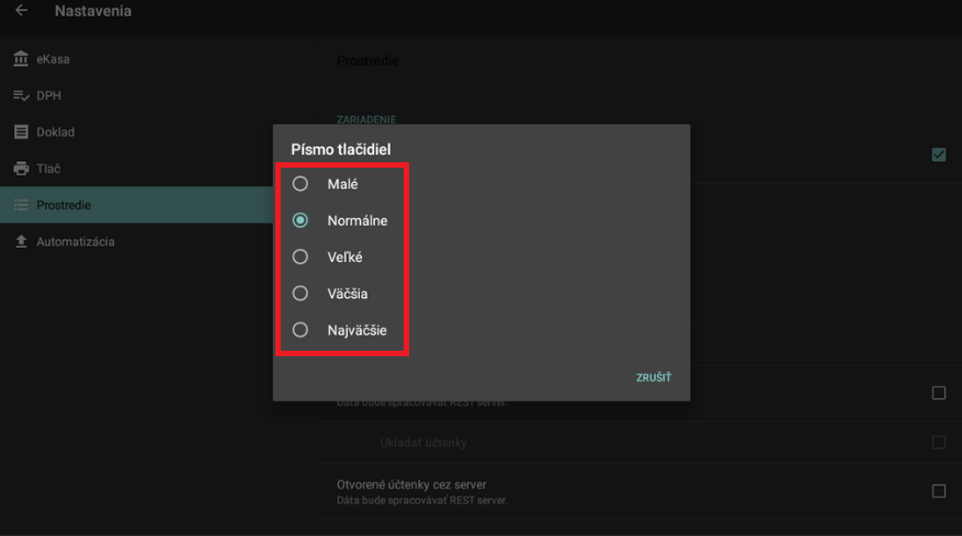 V aplikácií je možné nastaviť veľkosť písma tlačidiel po stlaačení