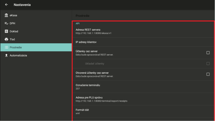 (adresa), kam sa odosielajú údaje o produktoch a účtenkách na server.