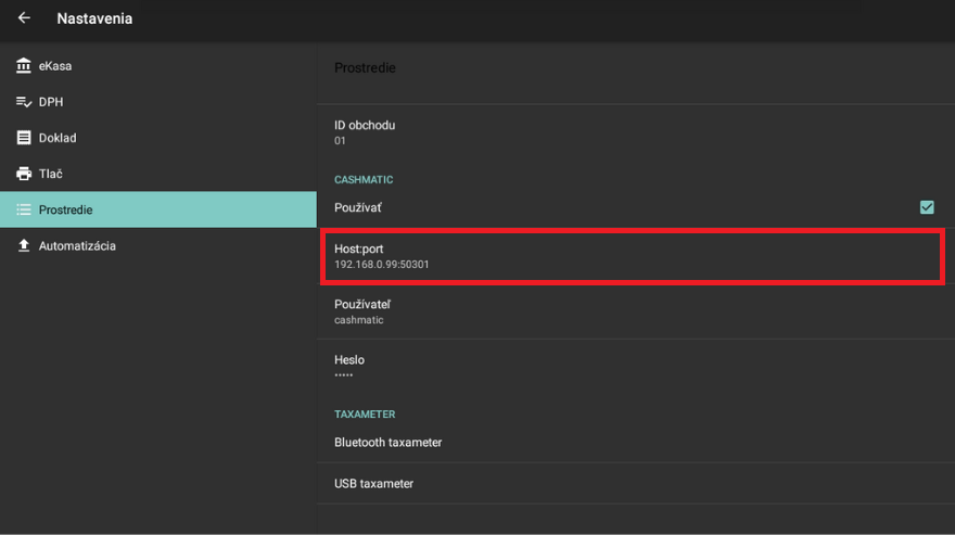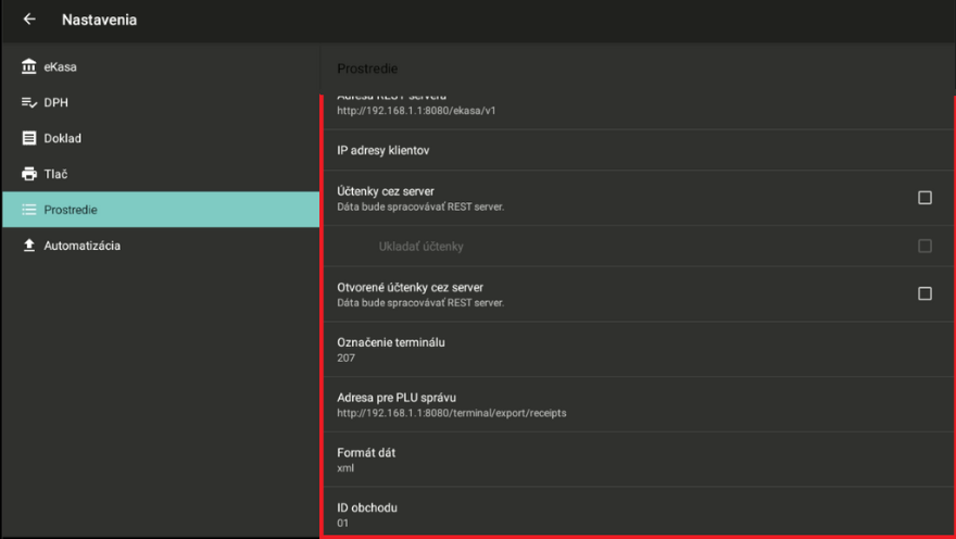pokladni, kam má posielať údaje (adresa servera, ktorý spracúva