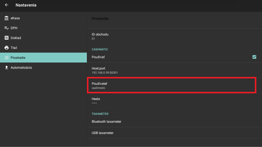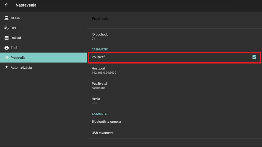Pre aktivovanie používania CASHMATIC, je potrebné