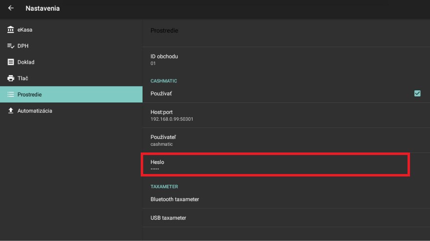 Poslednou možnosťou je nastaviť heslo k použitiu cashmaticu.