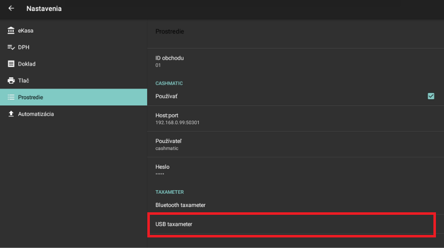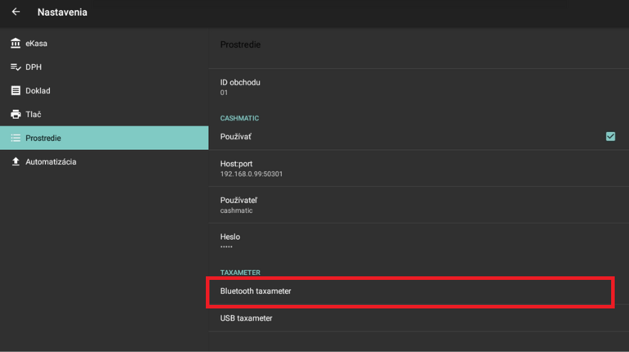 Pre aktivovanie zvoleného pripojeného TAXAMETRA, ho