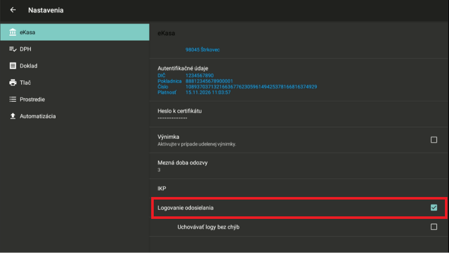 zaznamenáva (loguje) celý proces komunikácie s eKasa systémom Finančnej
