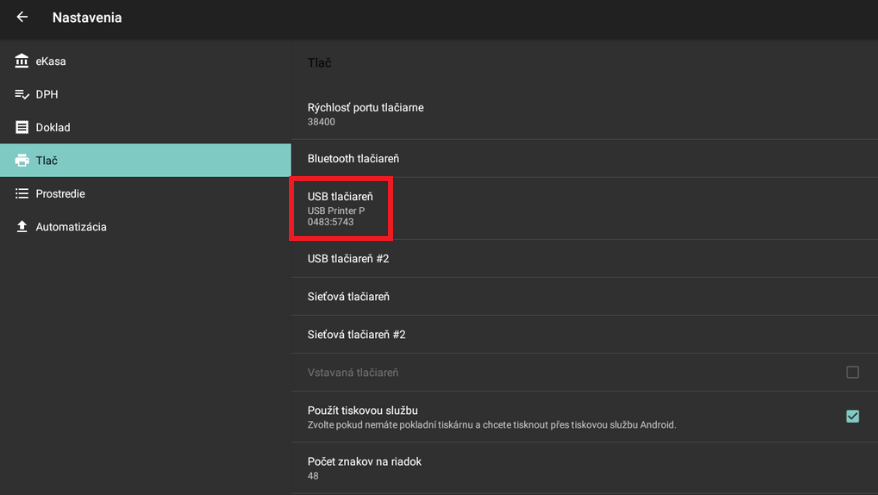 Tlačiareň je potrebné pripojiť s usb káblom do zariadenia a zvoliť za aktívnu.